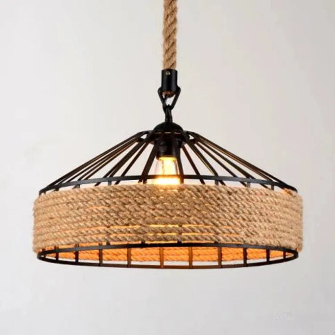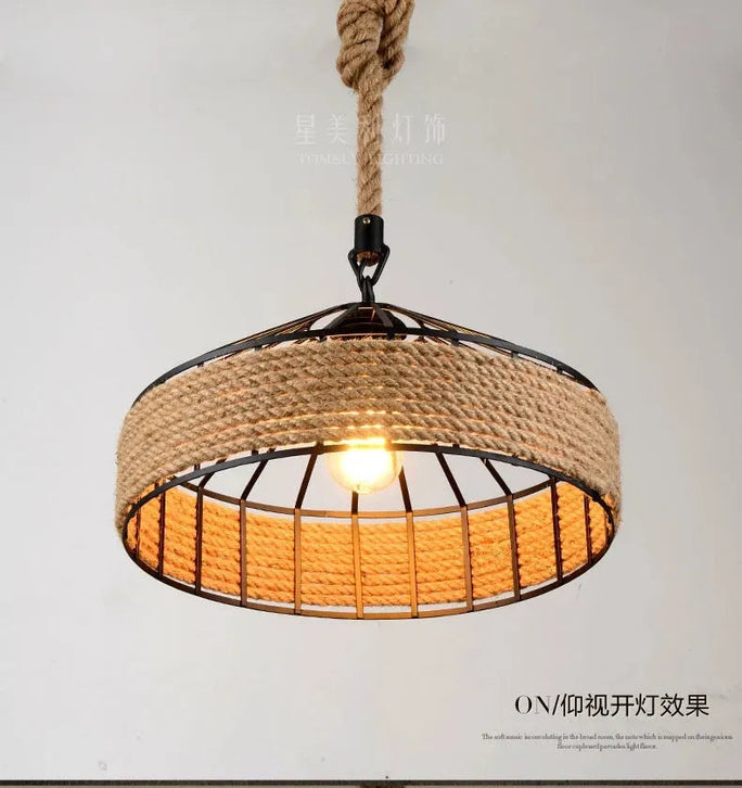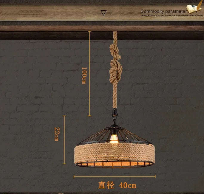 Retro Iron Base Hemp Rope Bar Café Chandelier