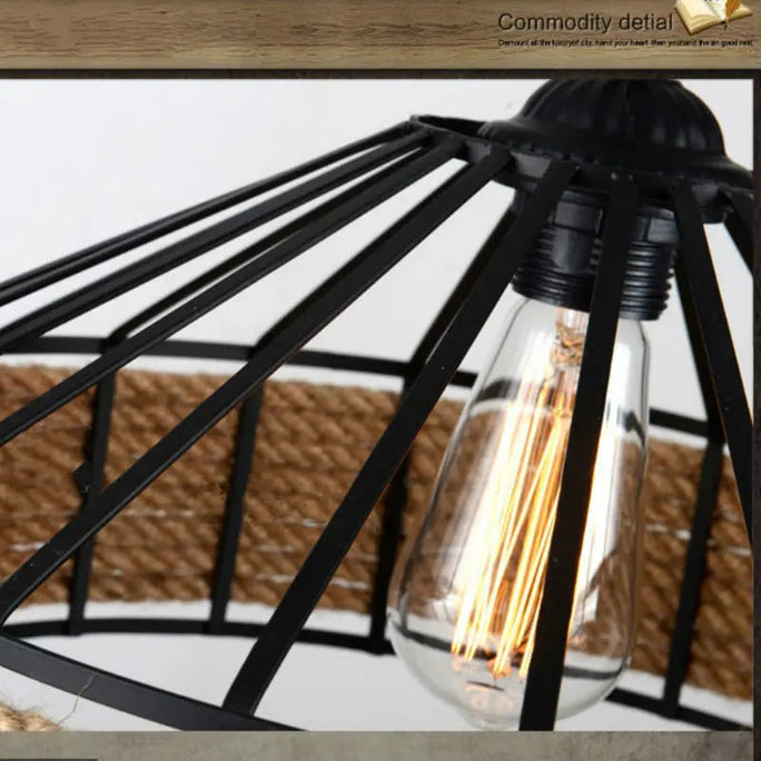 American Retro Iron Base Hemp Rope Chandelier Bar Cafe Restaurant Black Creative Industrial Wind Chandelier