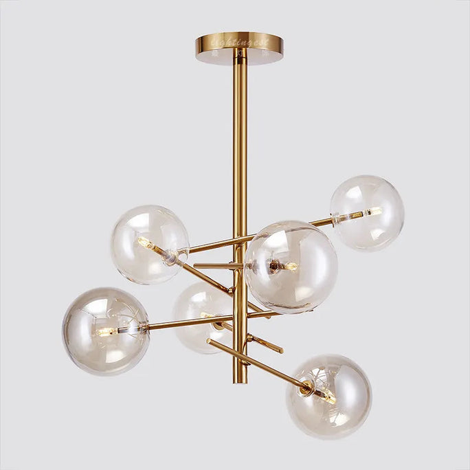 Illuminate your space with sophistication and elegance using the designer chandelier Gold Glass Bubble lamp by ZHTES. Perfect for any room, this modern and exclusive chandelier features a gold and amber color scheme and is available in 3, 4, 6, or 8-head variations, making it a versatile and luxurious addition to your dining room, kitchen, bedroom, or even a restaurant setting. With a lifespan of 30,000 hours and a 3-year warranty, the Gold Glass Bubble lamp uses LED technology and offers a warm, soft light with a high color rendering index of 90. Crafted with quality iron and glass materials, this chandelier is a true work of art and will elevate the ambiance of your space. Order now and experience the beauty and sophistication of the Gold Glass Bubble lamp.