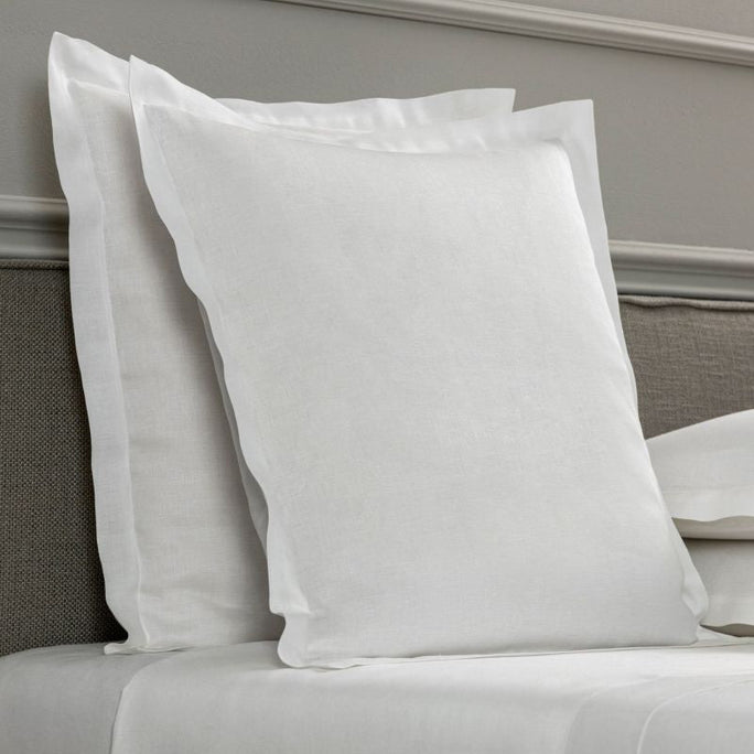 The Divine Sham in white is the perfect addition to any bed. Crafted in 100% linen sateen the sham is soft and luxurious. Made in Italy. Pillow insert is not included.