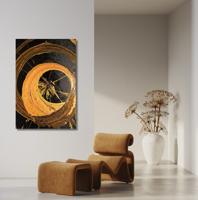 circumstances. The painting's layered texture and the interplay of light invite a reflection on the complex layers of human emotion and the golden threads of compassion