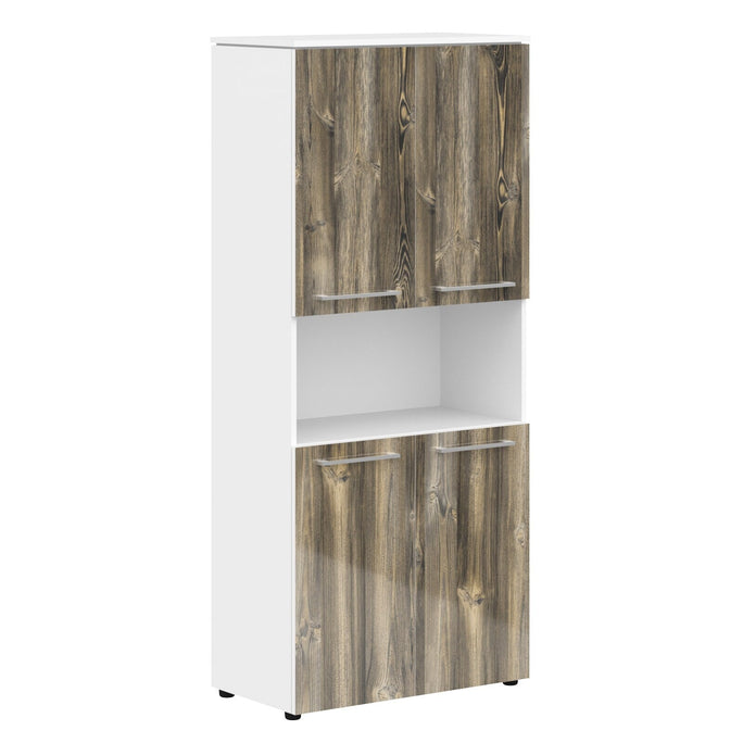 EXECUTIVE FULL HEIGHT CABINET, MADE IN E1 LAMINATE CHIPBOARD, WITH MIDDLE OPEN SHELF, UPPER AND LOWER WOODEN SWING DOORS