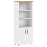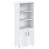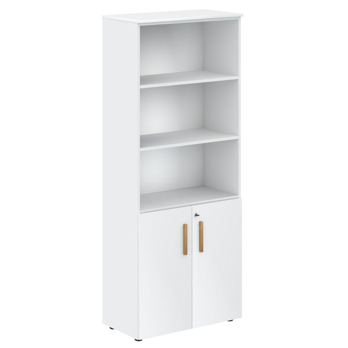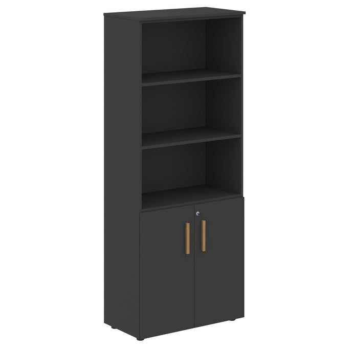 EXECUTIVE FULL HEIGHT CABINET, MADE IN E1 LAMINATE CHIPBOARD, WITH OPEN SHELVES AND LOWER WOODEN SWING DOORS