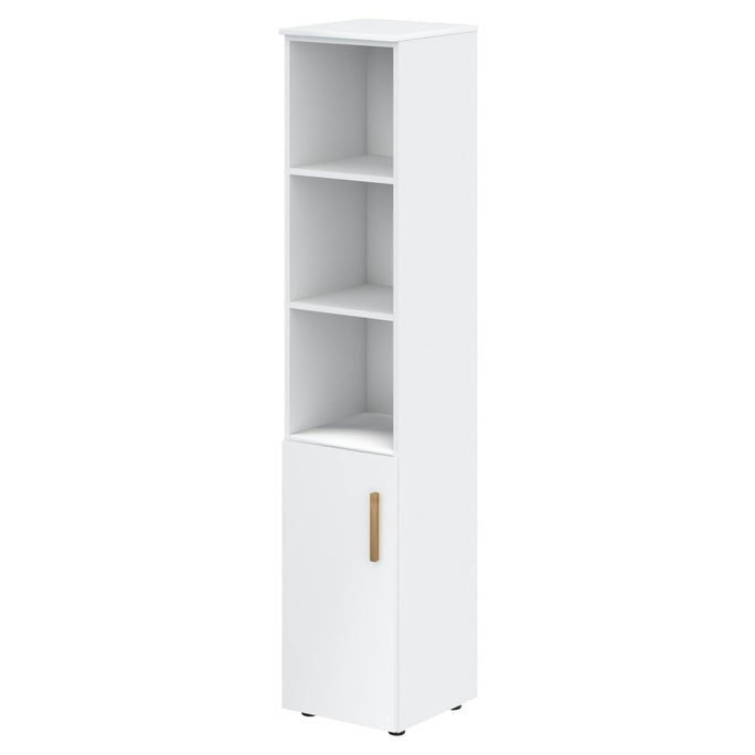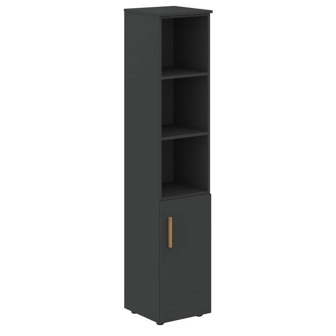 EXECUTIVE FULL HEIGHT CABINET, MADE IN E1 LAMINATE CHIPBOARD, WITH OPEN SHELVES AND WOODEN SWING DOOR