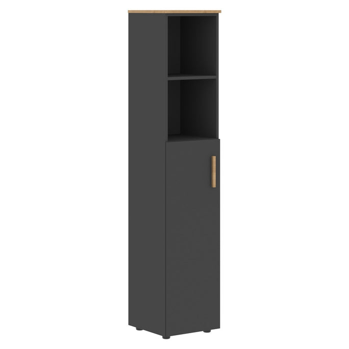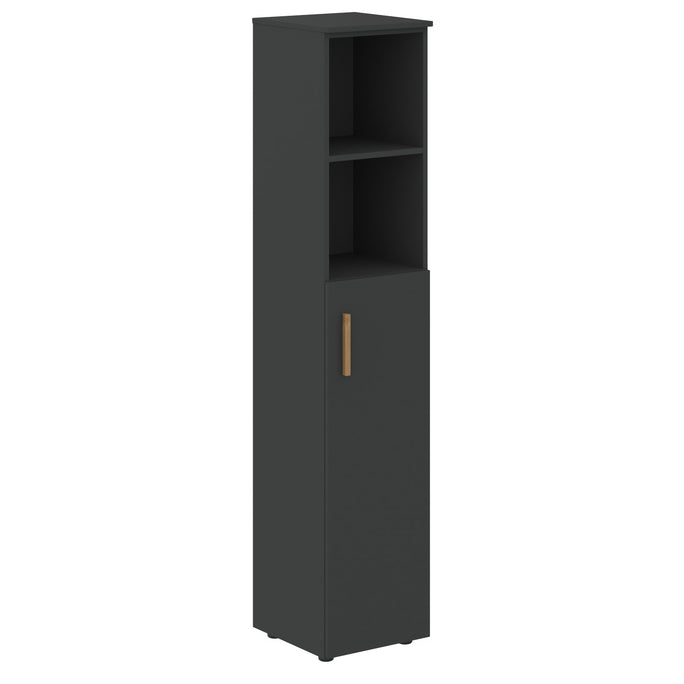 EXECUTIVE FULL HEIGHT CABINET, MADE IN E1 LAMINATE CHIPBOARD, WITH OPEN SHELVES AND WOODEN SWING DOOR