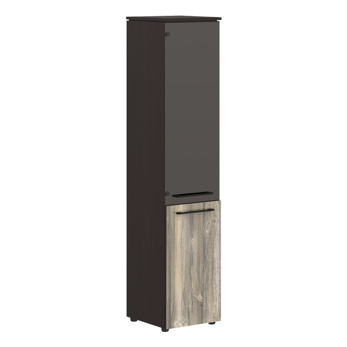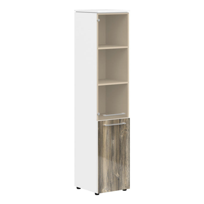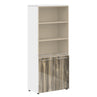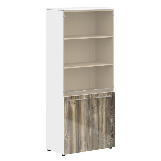 EXECUTIVE FULL HEIGHT CABINET, MADE IN E1 LAMINATE CHIPBOARD, WITH UPPER GLASS AND LOWER WOODEN SWING DOOR