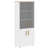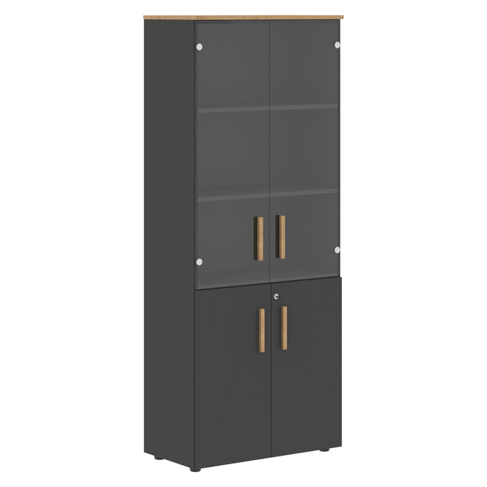 EXECUTIVE FULL HEIGHT CABINET, MADE IN E1 LAMINATE CHIPBOARD, WITH UPPER GLASS AND LOWER WOODEN SWING DOORS