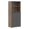 EXECUTIVE FULL HEIGHT CABINET, MADE IN E1 LAMINATE CHIPBOARD, WITH UPPER OPEN SHELVES AND LOWER WOODEN SWING DOOR