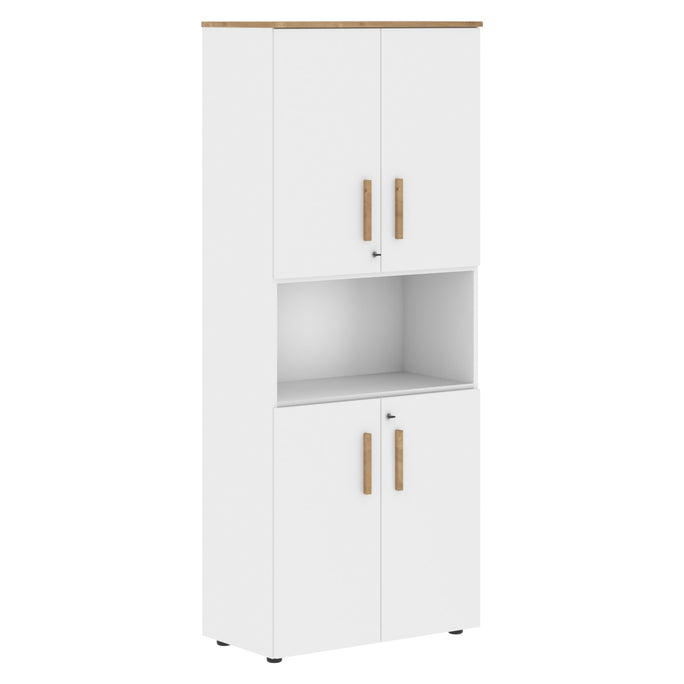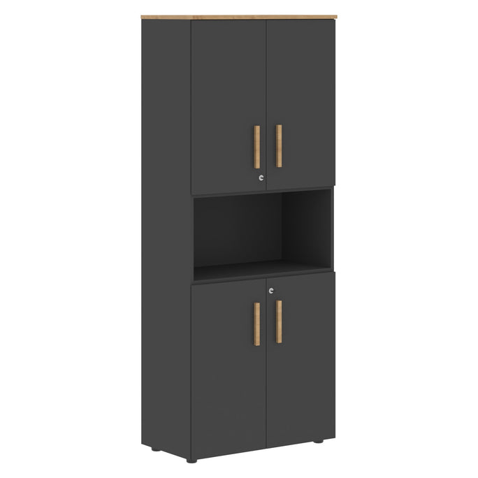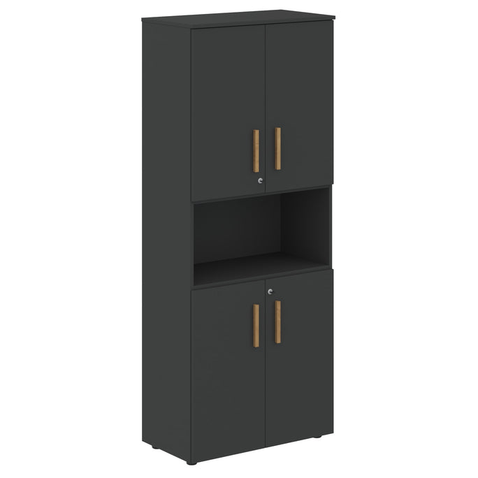 EXECUTIVE FULL HEIGHT CABINET, MADE IN E1 LAMINATE CHIPBOARD, WITH WOODEN SWING DOORS AND OPEN SHELF