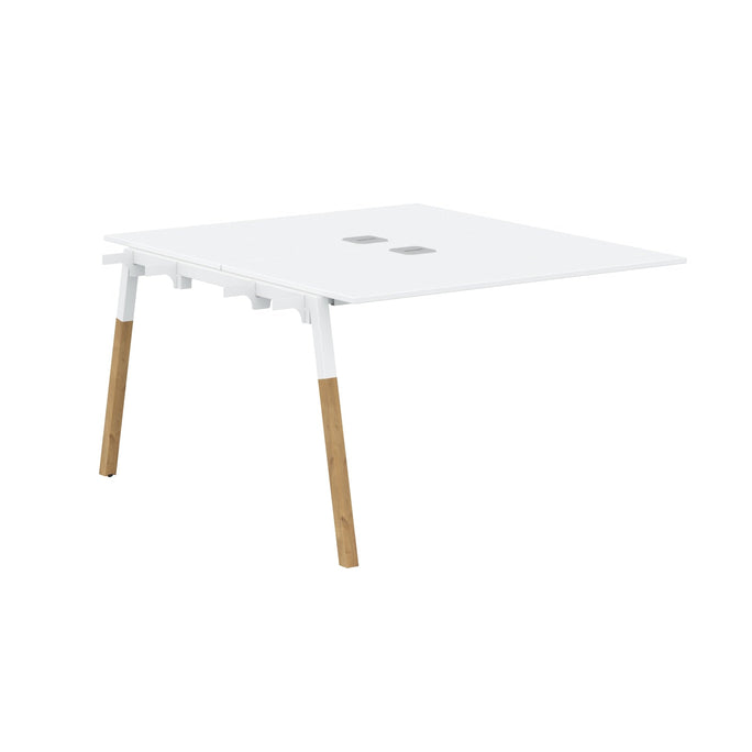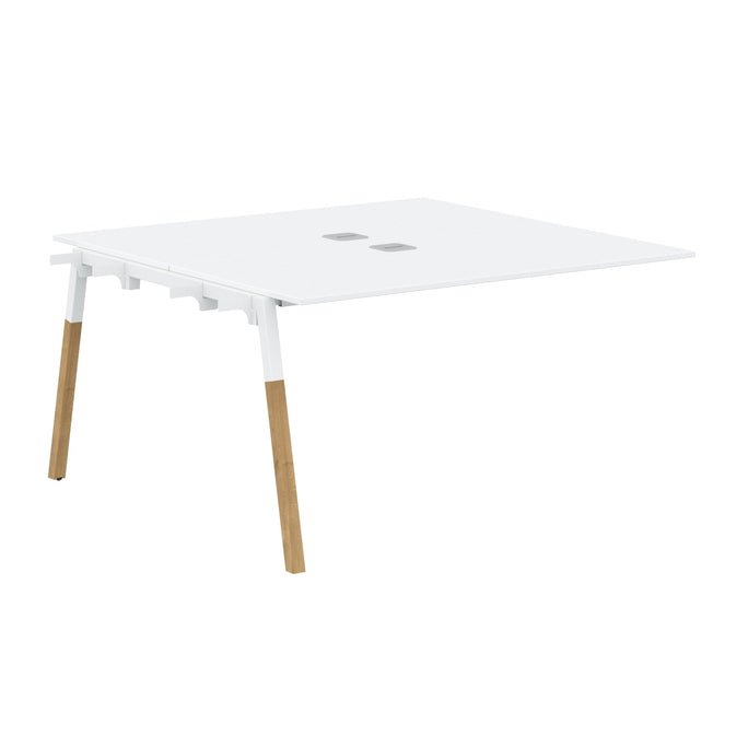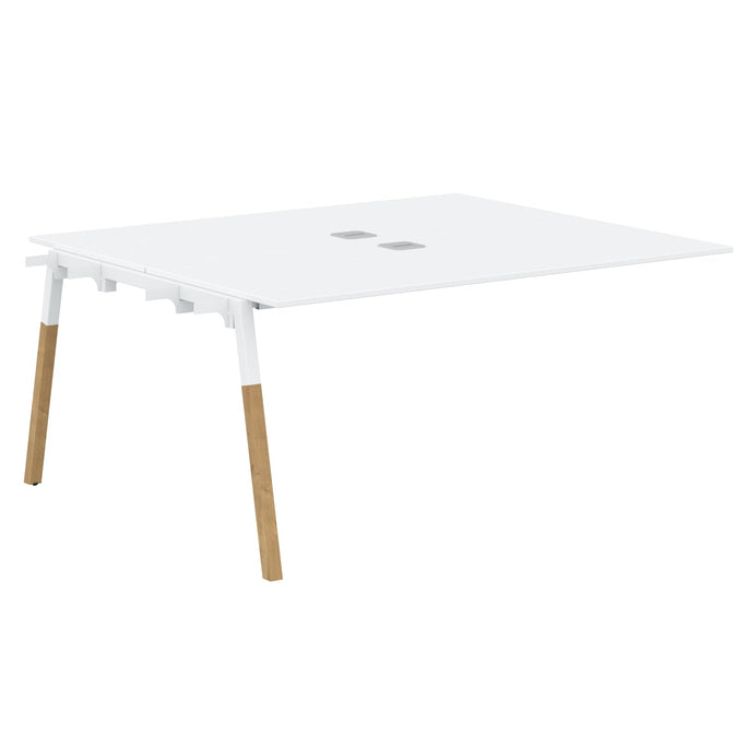 EXECUTIVE MODERN DESIGN CLUSTER OF 02 WORKSTATION EXTENSION, MADE IN E1 LAMINATE CHIPBOPARD, WITH ONE SIDE SLANTED SHAPE METAL/WOODEN LEGS
