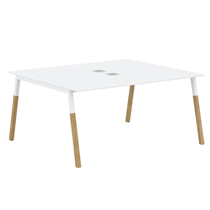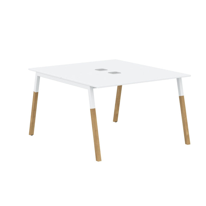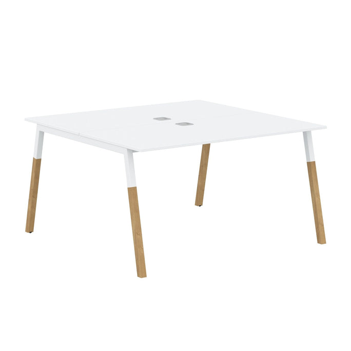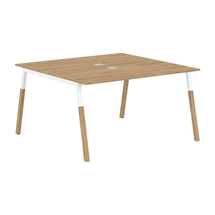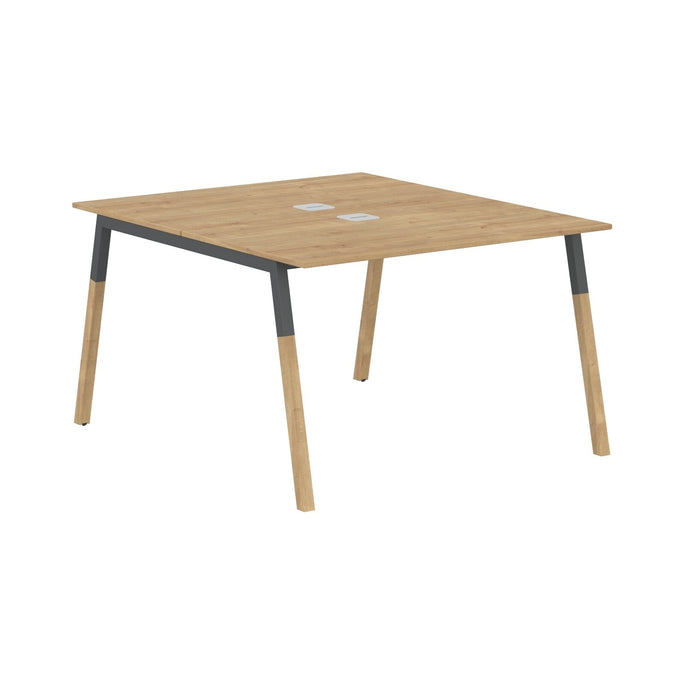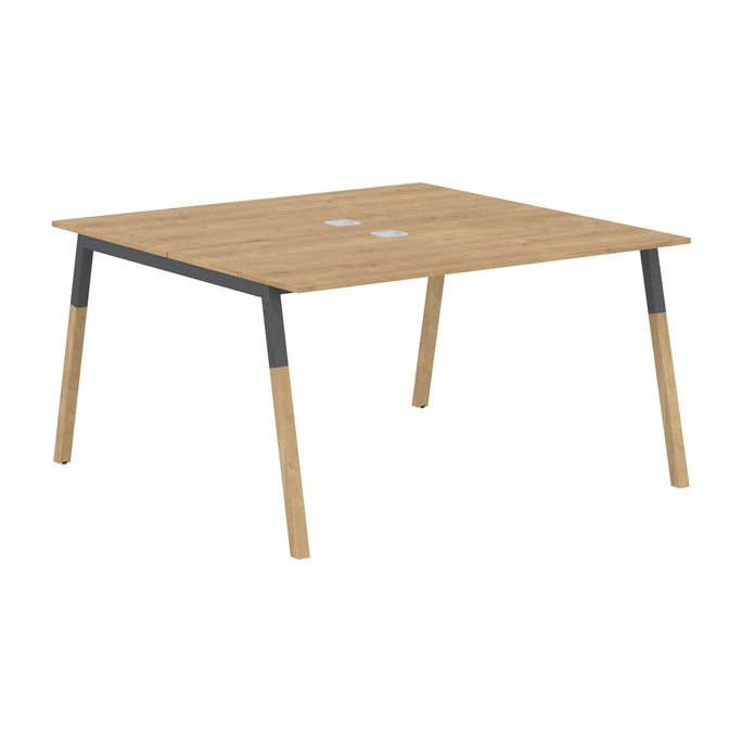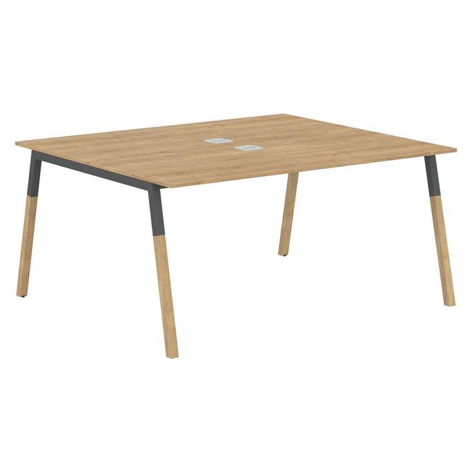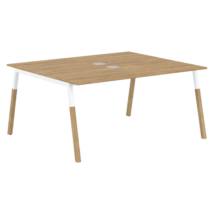 EXECUTIVE MODERN DESIGN CLUSTER OF 02 WORKSTATION, MADE IN E1 LAMINATE CHIPBOPARD, WITH SLANTED SHAPE METAL/WOODEN LEGS
