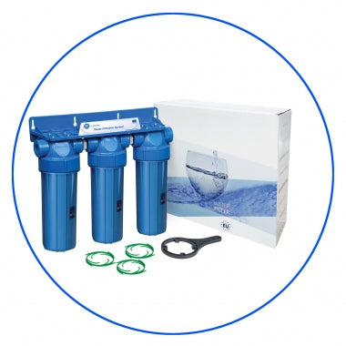Overview:10" three stage system with transparent filter housing sumps.Set includes: FHPLN-D-TRIPLE system, wrench, 3 bacteriostatic centering rings and color box.System is available with several connection types:FHPLN14-D-TRIPLE - 1/4" NPT,FHPLN12-D-TRIPLE - 1/2" BSP,FHPLN34-D-TRIPLE - 3/4" BSP,