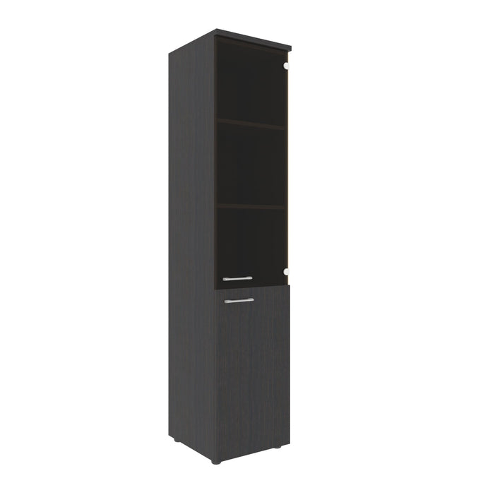 FULL HEIGHT CABINET, MADE IN E1 LAMINATE CHIPBOARD, WITH GLASS AND WOODEN SWING DOORS
