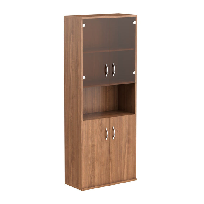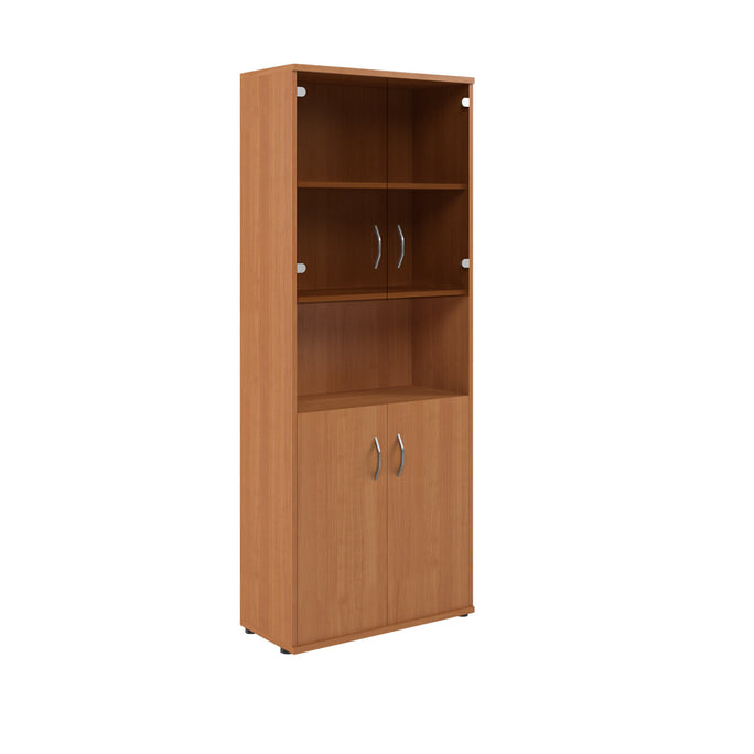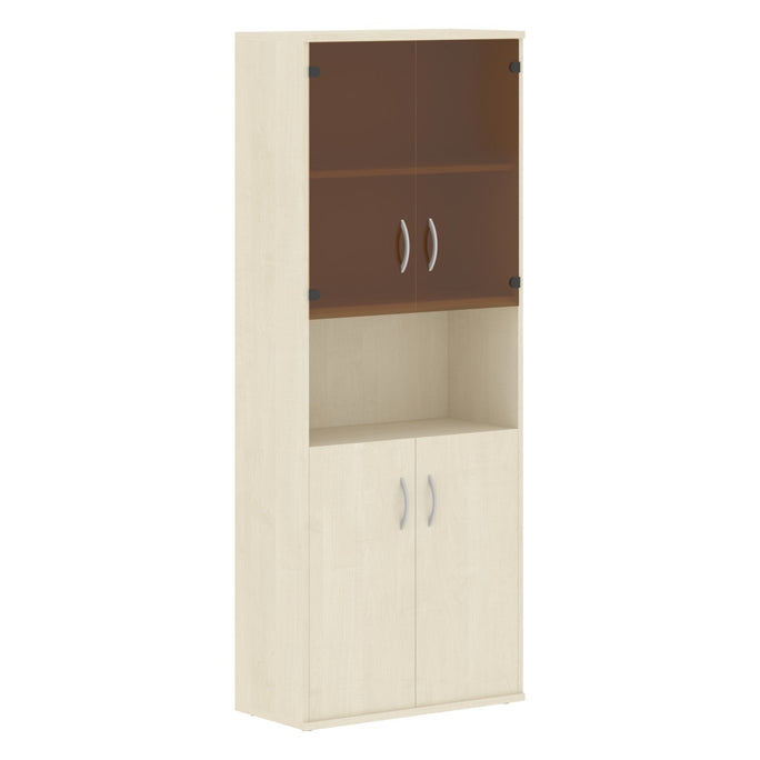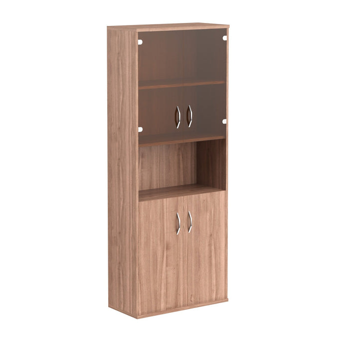 FULL HEIGHT CABINET, MADE IN E1 LAMINATE CHIPBOARD, WITH OPEN SHELF, GLASS AND WOODEN SWING DOORS