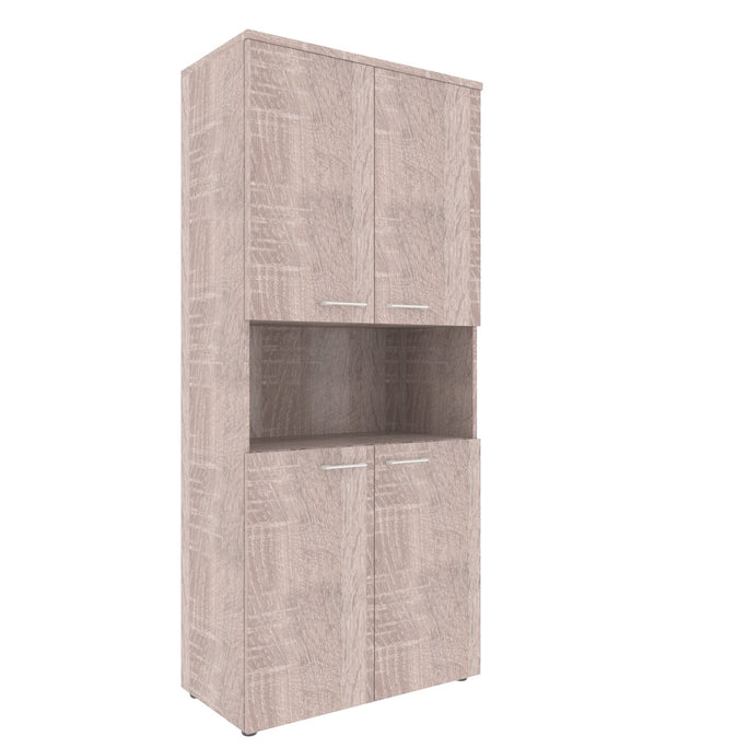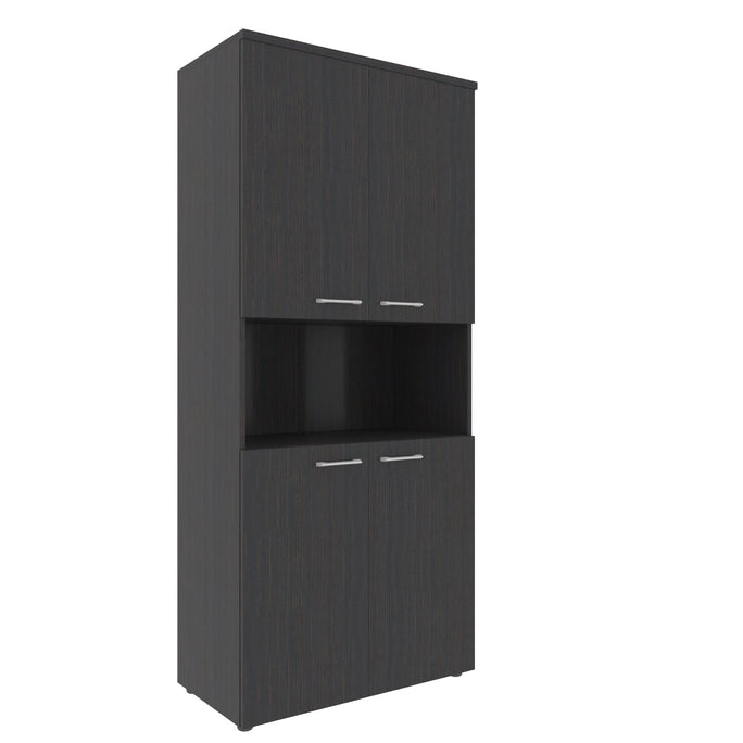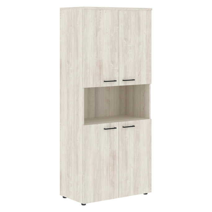 FULL HEIGHT CABINET, MADE IN E1 LAMINATE CHIPBOARD, WITH OPEN SHELVES AND WOODEN SWING DOORS