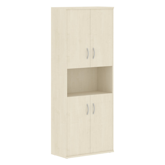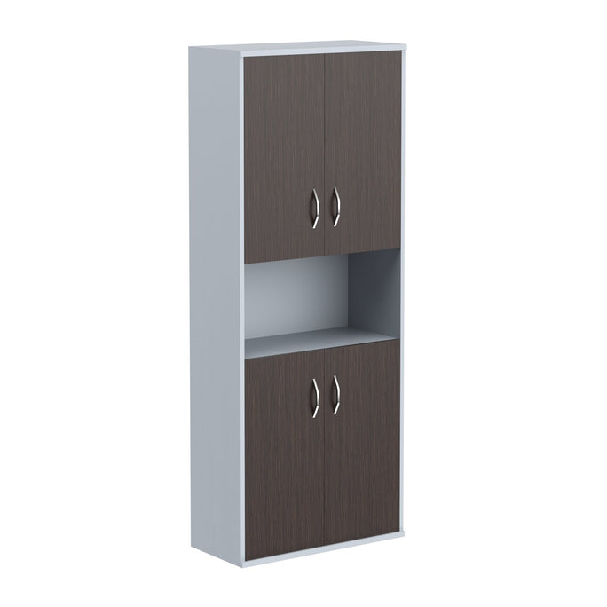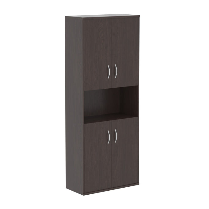 FULL HEIGHT CABINET, MADE IN E1 LAMINATE CHIPBOARD, WITH WOODEN SWING DOORS AND OPEN SHELF