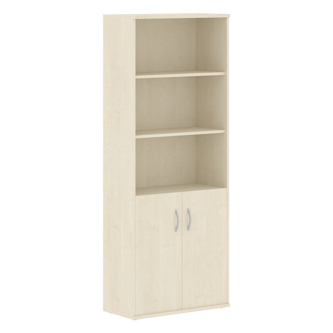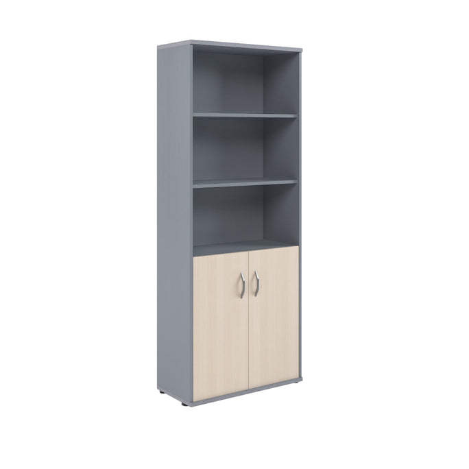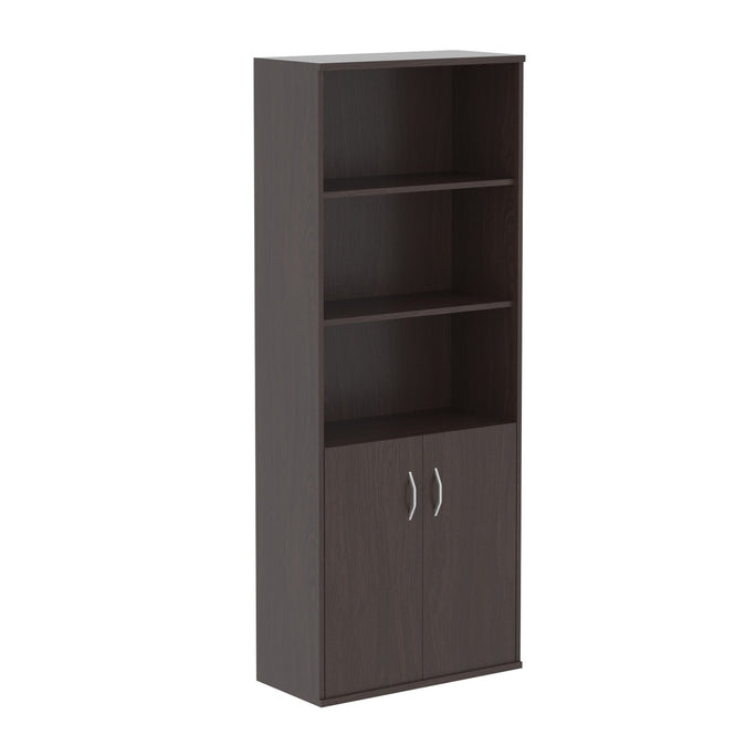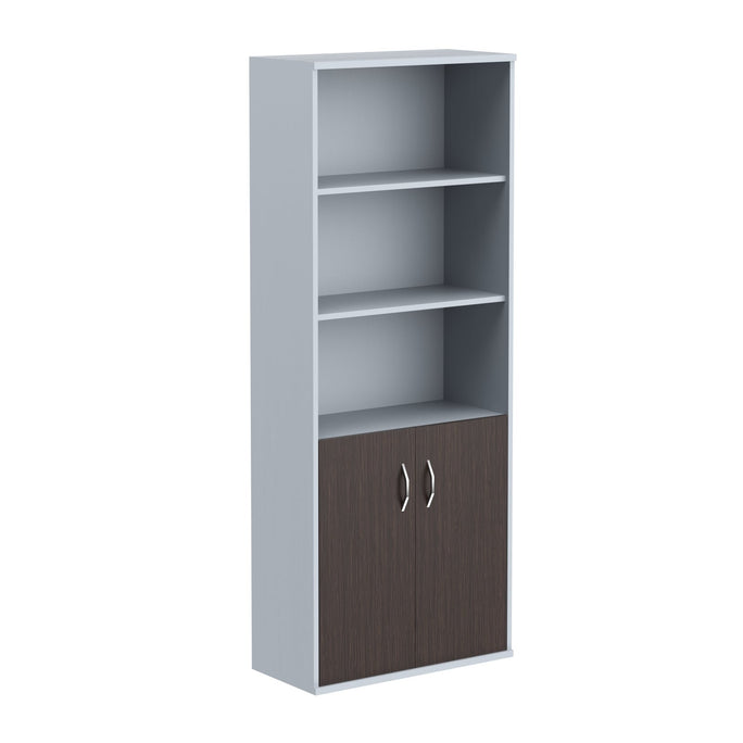 FULL HEIGHT CABINET, MADE IN E1 LAMINATE CHIPBOARD, WITH WOODEN SWING DOORS AND OPEN SHELVES
