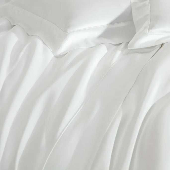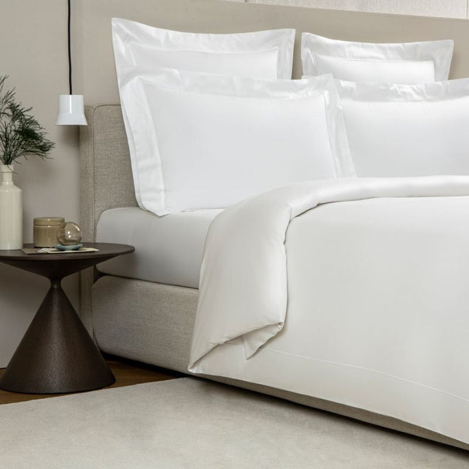 Soft and smooth with high shine, this cosy long-staple cotton sateen duvet cover is finished with an elegant shadow stitch. Includes a button closure. 100% cotton. Made in Italy.