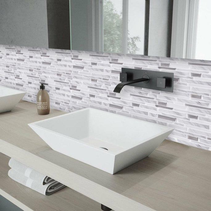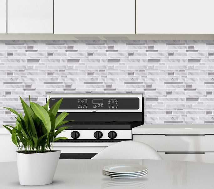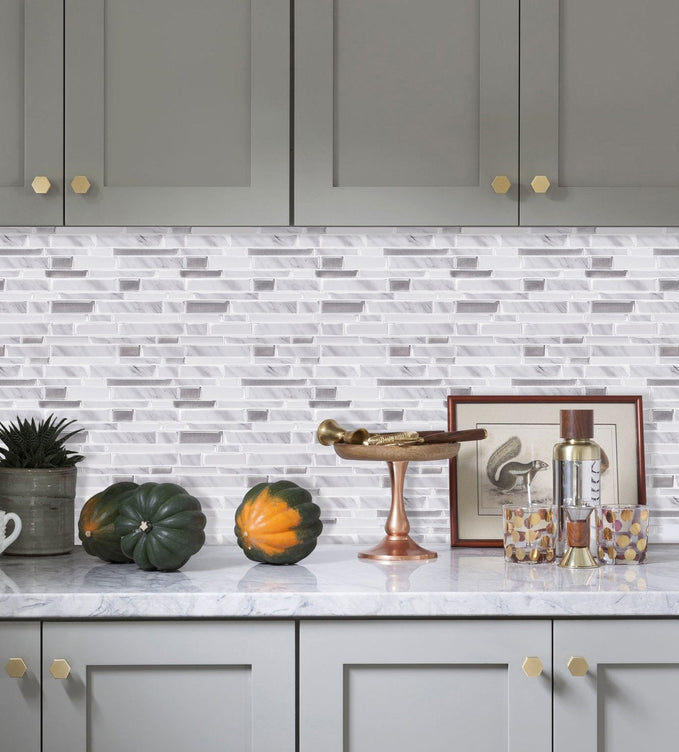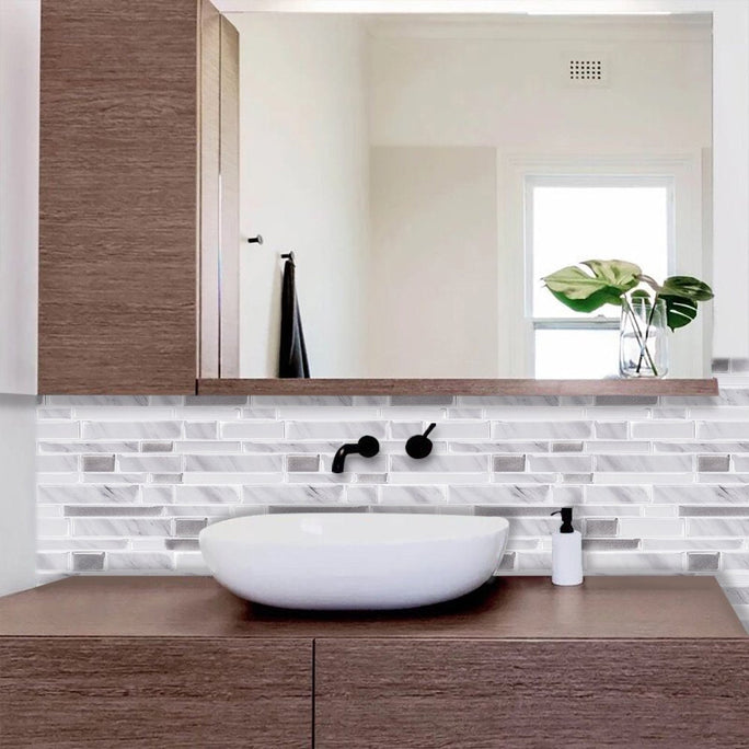 Step 3. Overlap the tiles and grout lines, peel off the backing, and stick them side by side for a seamless appearance.