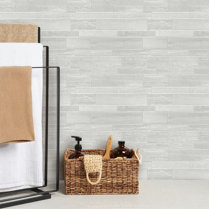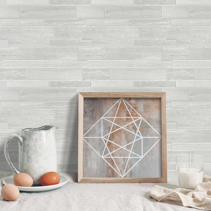 Step 3. Overlap the tiles and grout lines, peel off the backing, and stick them side by side for a seamless appearance.