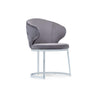 Grey upholstered backrest | Sleek half-circle base | Compact and stylish | Versatile lounge/waiting chair | Contemporary profile