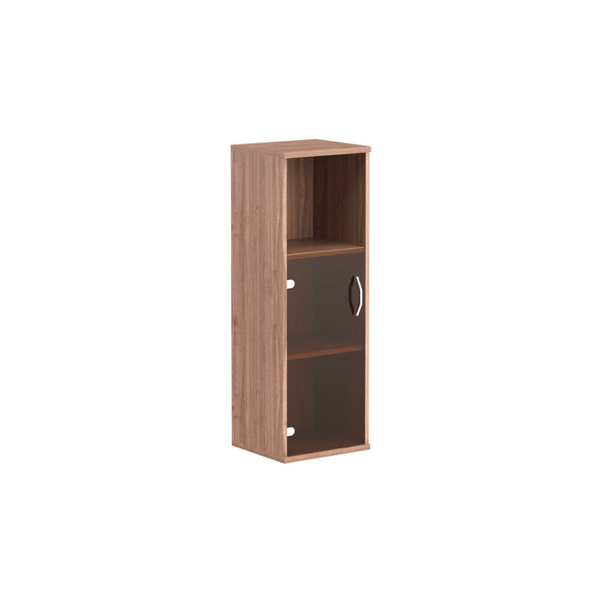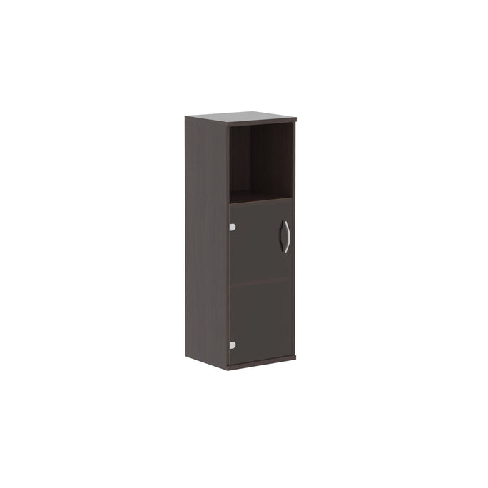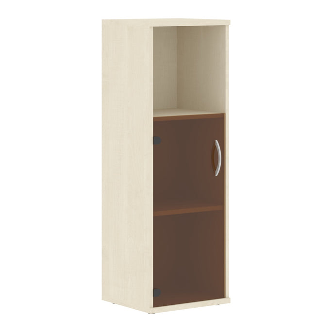 MEDIUM HEIGHT CABINET, MADE IN E1 LAMINATE CHIPBOARD, WITH GLASS SWING DOOR AND OPEN SHELF