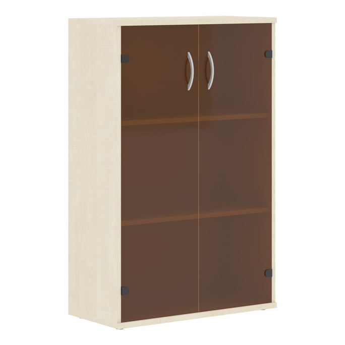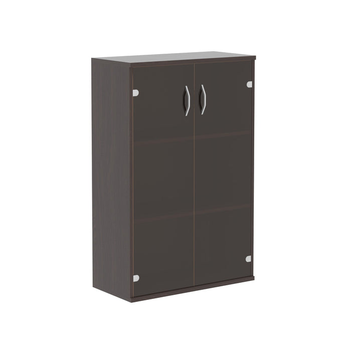 MEDIUM HEIGHT CABINET, MADE IN E1 LAMINATE CHIPBOARD, WITH GLASS SWING DOORS
