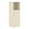 MEDIUM HEIGHT CABINET, MADE IN E1 LAMINATE CHIPBOARD, WITH OPEN SHELF AND WOODEN SWING DOOR