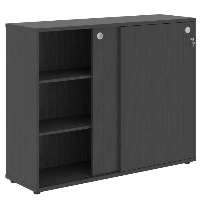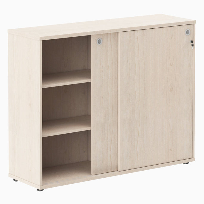 MEDIUM HEIGHT CABINET, MADE IN E1 LAMINATE CHIPBOARD, WITH WOODEN SLIDE DOORS