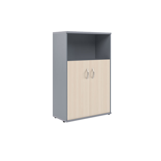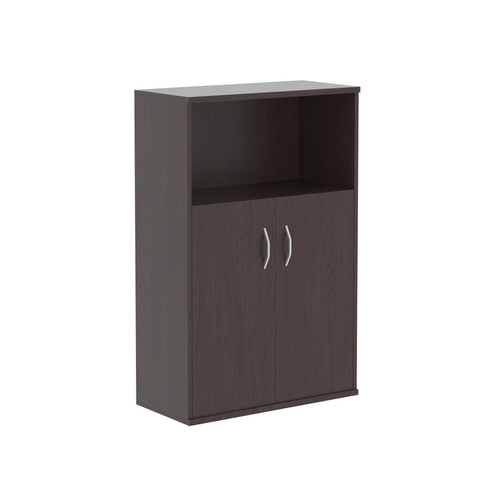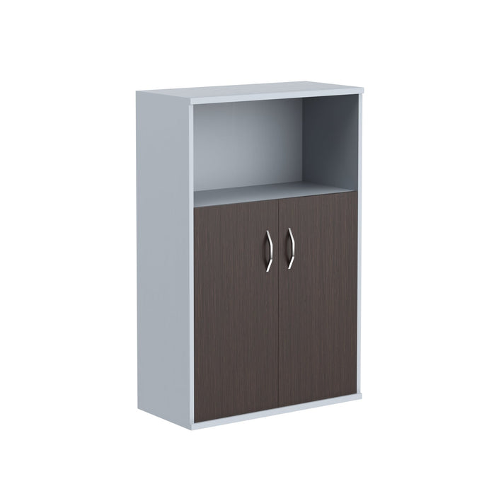 MEDIUM HEIGHT CABINET, MADE IN E1 LAMINATE CHIPBOARD, WITH WOODEN SWING DOOR AND OPEN SHELF