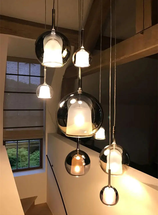 Nordic Creative Glass Chandelier Restaurant Bar Bubble Glass Chandelier Multi-head Combination Stair Long Chandelier