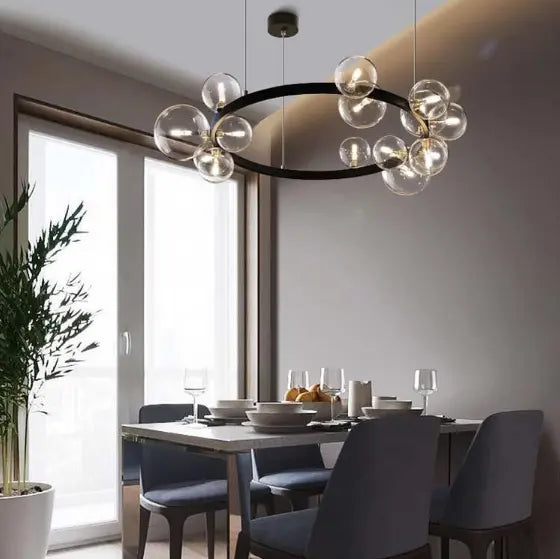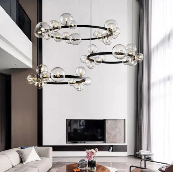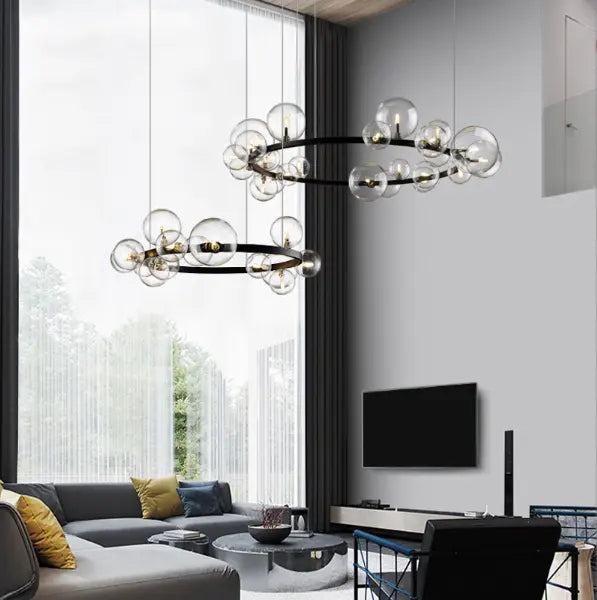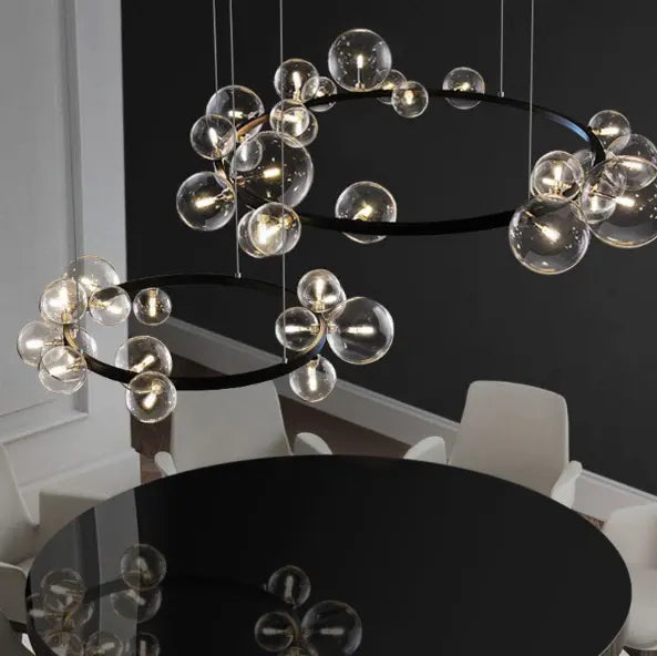 Nordic Living Room Lamp Simple Wind Magic Beans Molecular Bubble Lamp Bedroom Lamp Restaurant Glass Ball Chandelier Black Iron