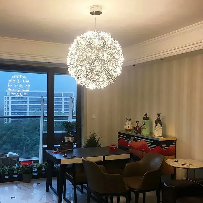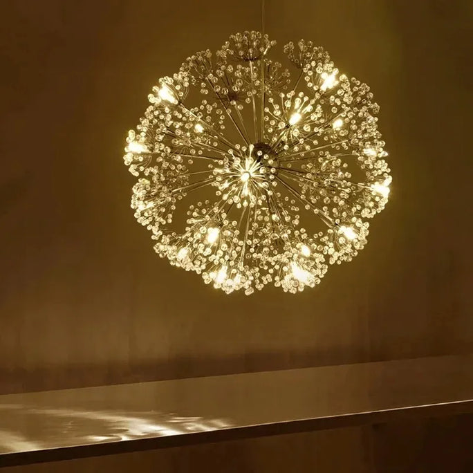 Nordic Modern Circular Dandelion Crystal Ball Chandelier Creative LED Living Room Restaurant Bar Lamps Dining Room Lights