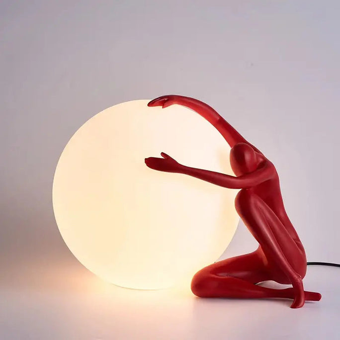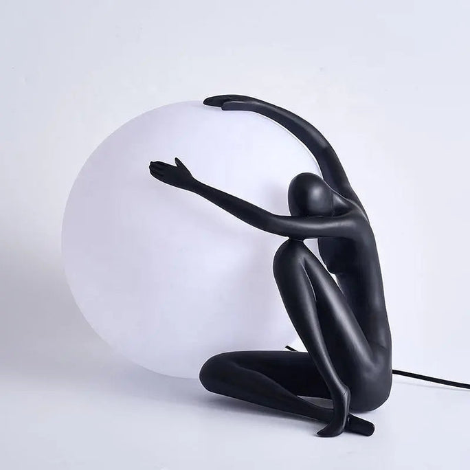 Nordic modern simple humanoid art sculpture holding ball resin led table lamp living room bedroom decoration bedside desk lamps