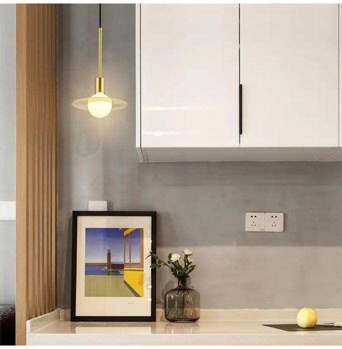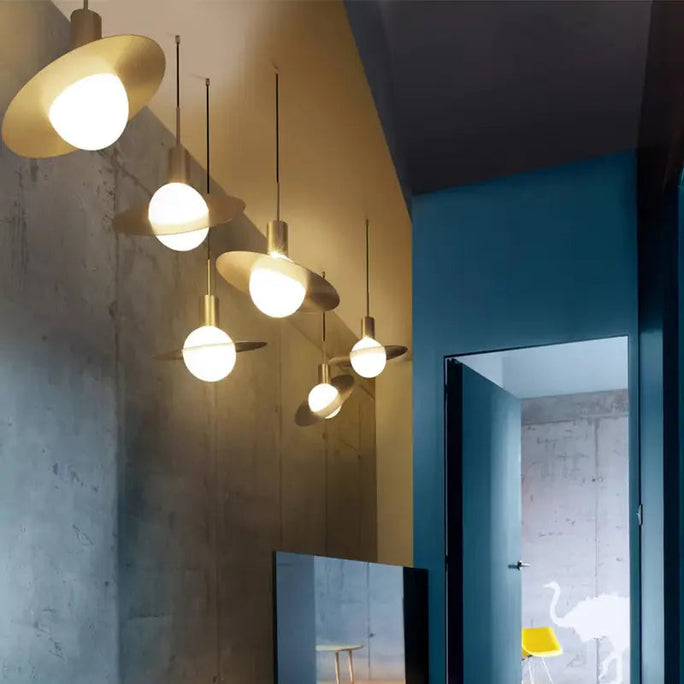 Nordic personality copper glass ball chandelier simple creative dining room living room bedroom head of bed designer
