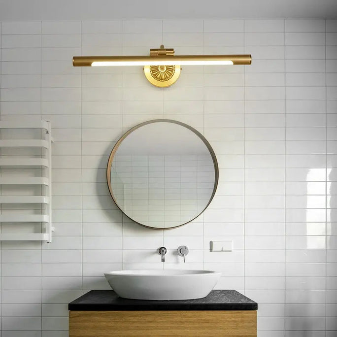 Nordic Retro Copper Mirror LED Headlight Mirror Cabinet Bathroom Light Vanity Wall Lamp Simple Toilet Makeup Lamp