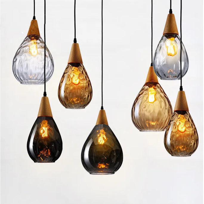 Nordic solid wood glass chandelier Modern style bedside bar dining room glass chandelier