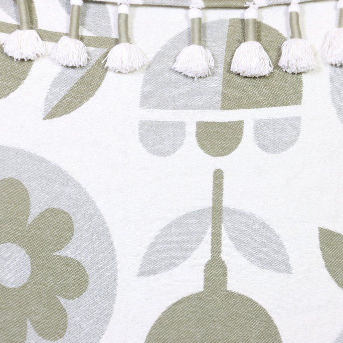Olive Green Handwoven Cotton Throw with fringe 50" x 60" (127 x 172 cm)