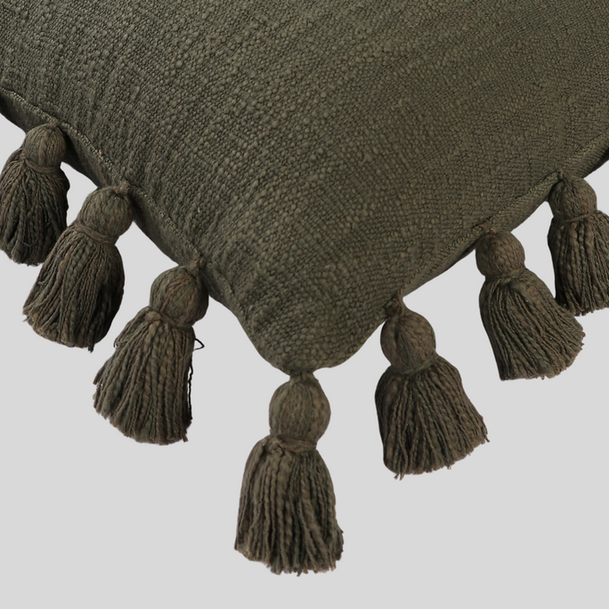 The Osga Cushion stands out as one of our favorites this season. Crafted from exquisite woven cotton fabric, this cushion showcases an array of playful tassels adorning its edges, transforming it into the ideal understated statement piece for any room.