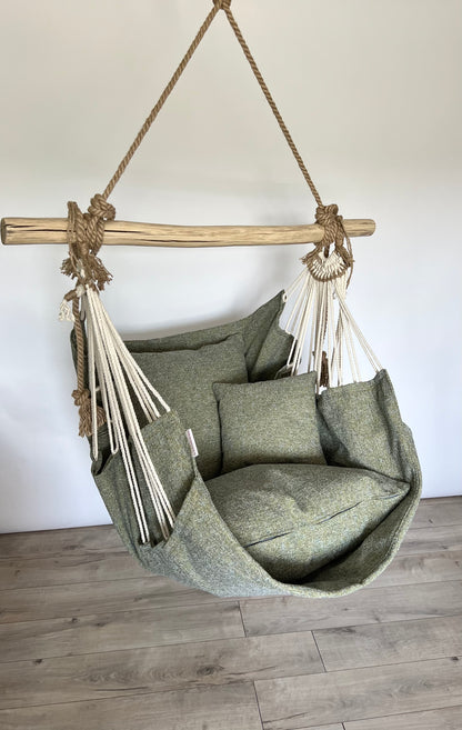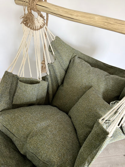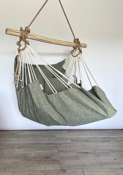 Carefully cut and sewn, it offers comfort even to the tallest user, with a large load capacity. The hammock armchair is reversible, it can be used on both sides.