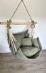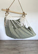 Handcrafted from high-quality, soft-touch materials and 100% recycled cotton twine, the hammock chair is supported by a hardwood beam and heavy-duty jute rope.