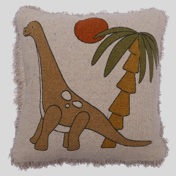 Infuse vibrancy, texture, and pattern into your children's bedroom or your living space with this stylish and unconventional cushion cover. Boasting a captivating mix of colors, and beautiful dino print with palm tree showcases an enticing design and texture, adding a contemporary flair to any setting.