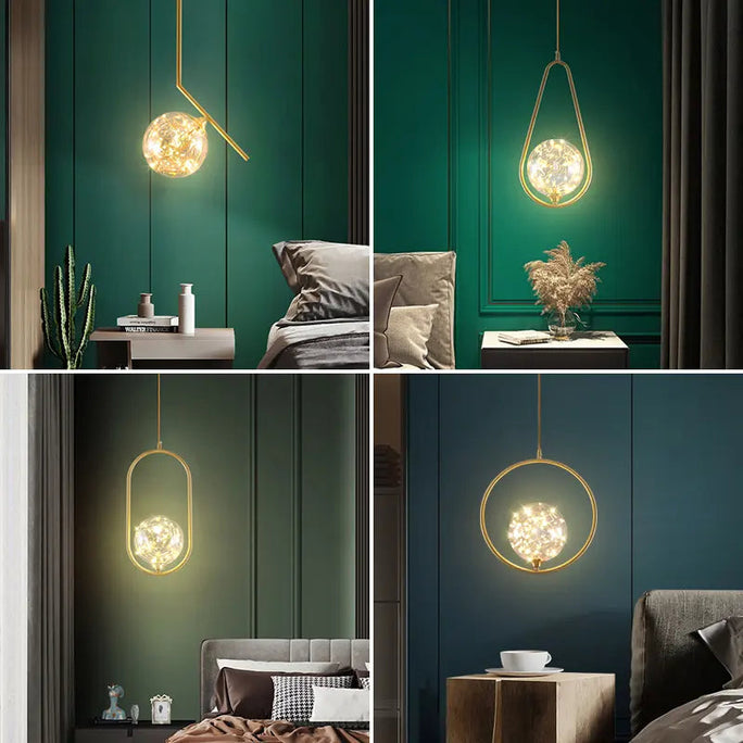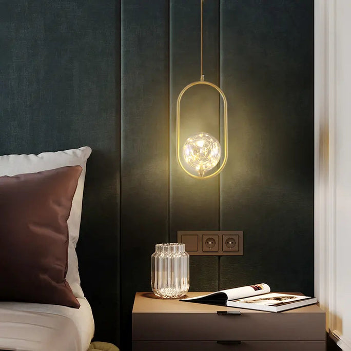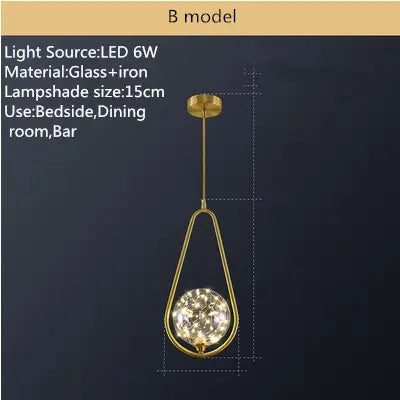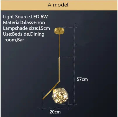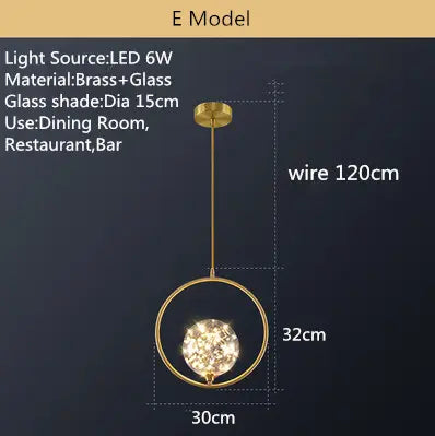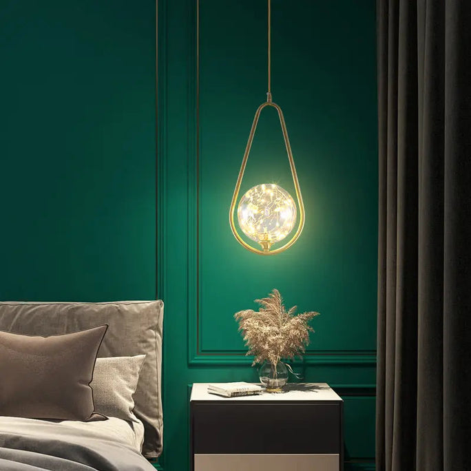 Postmodern glass single head chandelier restaurant luxury lamp copper simple bedroom bedside starry chandelier