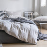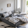 Premium Korean Single size 4 Pieces Reversible Constructor Design with 2 Attractive Pillow Covers, Plain Dark Grey Bedsheet and Plain Grey Duvet Cover without filler.