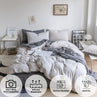 Luna Home Premium bedding offer you breathable and ultra soft feeling and you can enjoy a wonderful sleep every night. No deformation and more softness after repeated washing. The duvet cover fits over any same-size duvet, and each set contains a duvet cover with hidden zipper closure, four corners elastic fitted bed sheet and pillow cases. Bedding is an ideal choice for hot sleepers, ensuring optimal comfort and a more restful night's sleep. 80% cotton 20 fiber polyester 105 GSM is not only more durable and longer lasting than cotton, but it also repels dirt and keeps you comfortable all year round.