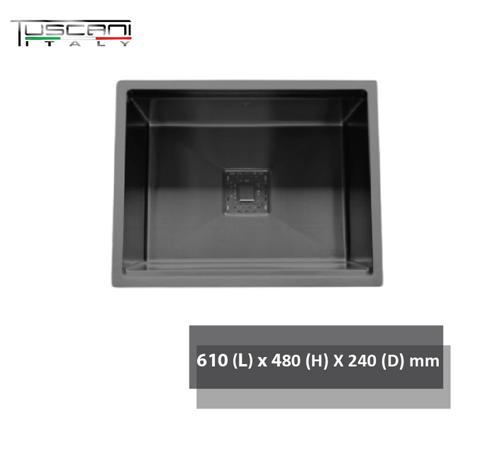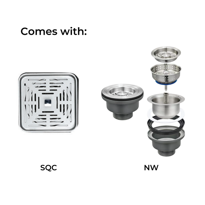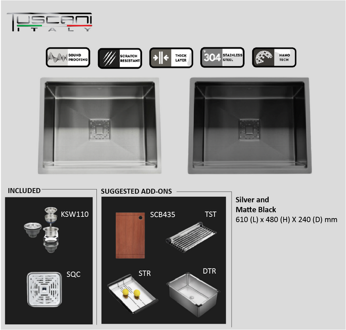 Set Includes: NW110 Normal Waste SQC Square Cover Bottle Trap Nano Technology - Scratch Resistant Handmade Suitable for Under-Mount Use COLOURMatte Black MATERIAL304 Stainless Steel TECHNICAL SPECIFICATIONAvailable in 2 Sizes:Q550NB: 550 (L) X 450 (B) X 205 (H) MMQ610NB: 610 (L) X 460 (B) X 210 (H) MM Elevate your kitchen with our Q550NB or Q610NB Square Under-Mount Kitchen Sink. Handmade with 304 Stainless Steel, these sinks feature Nano Technology for scratch resistance and come in two sizes. Choose Matte Black for a truly sophisticated touch.