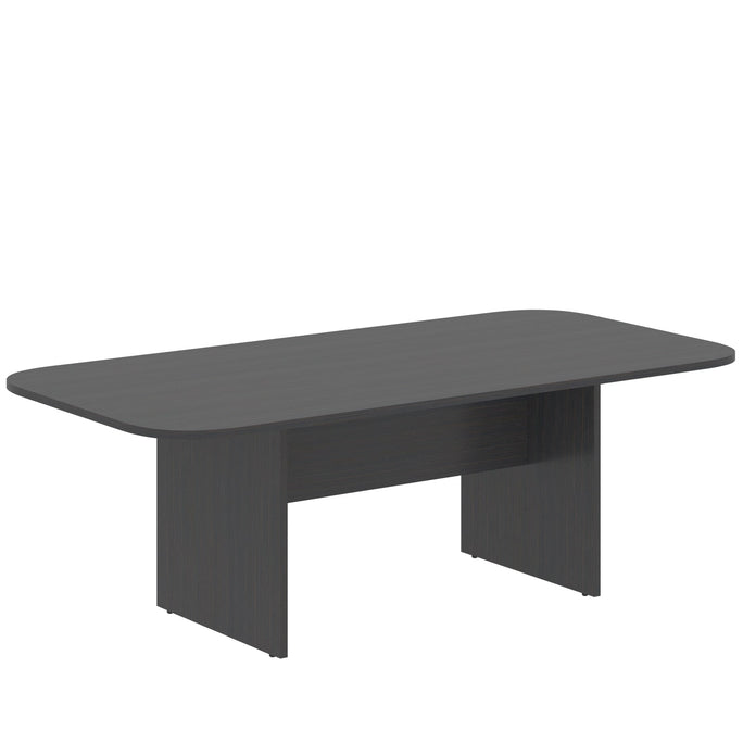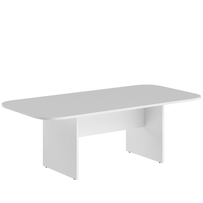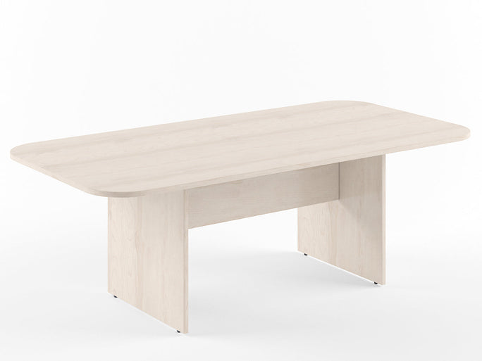 RECTANGULAR SHAPE WITH CURVE CORNERS MEETING DESK, MADE IN E1 LAMINATE CHIPBOPARD, WITH WOODEN MODESTY PANEL AND LEGS