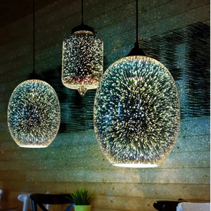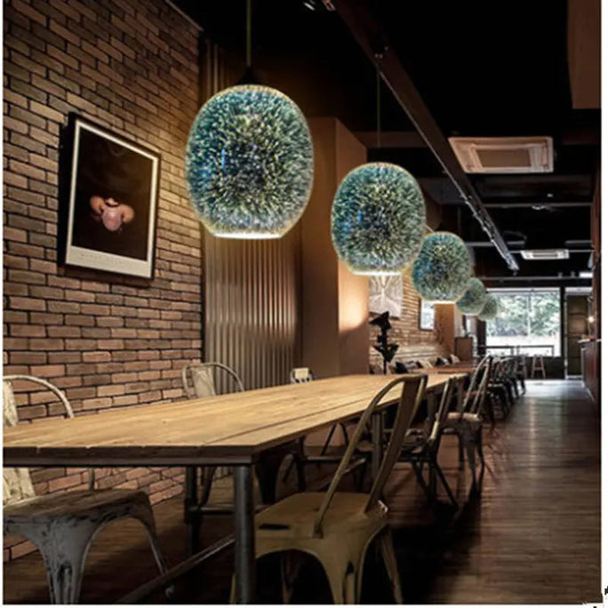 Restaurant lamp creative color personality 3D glass bar table chandelier retro cafe clothing store hair salon lighting