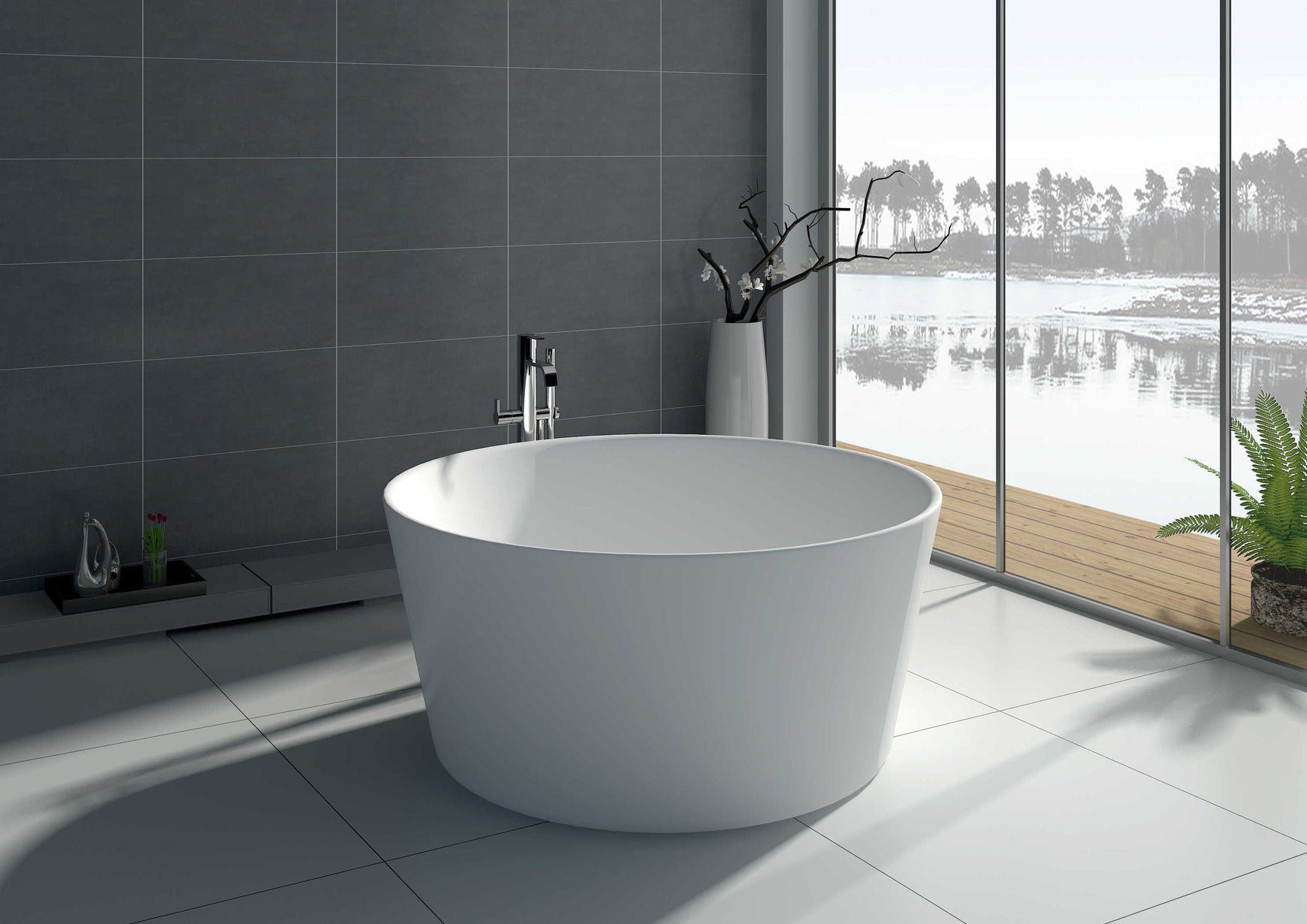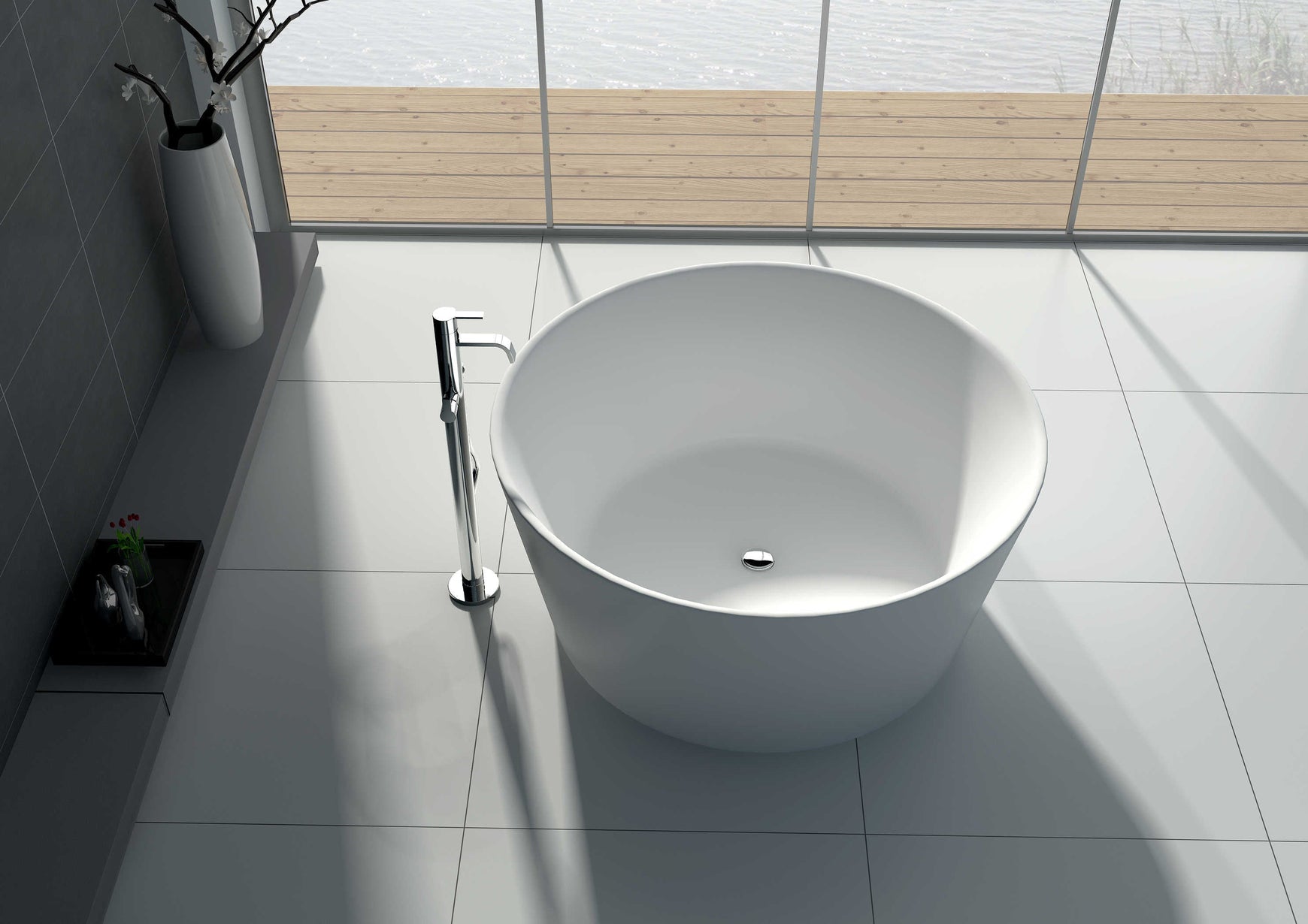 Raised double‑ended form • Stone resin structure • Thermal insulation • Smooth matte surface