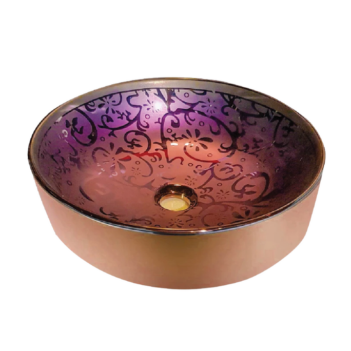 Round Deck Mounted Basin in Purple Flower Rainbow